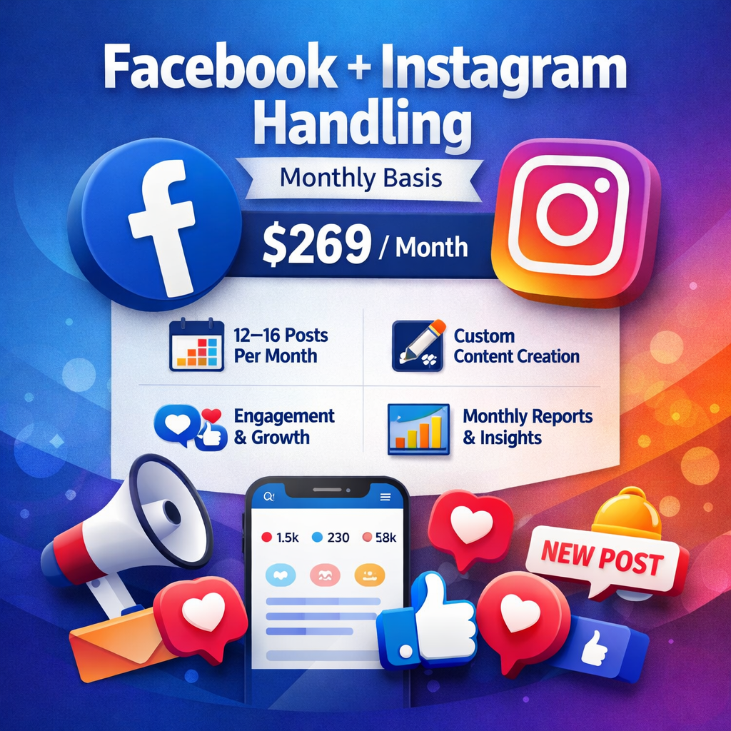 Facebook + Instagram Handling – Monthly Plan ($269)