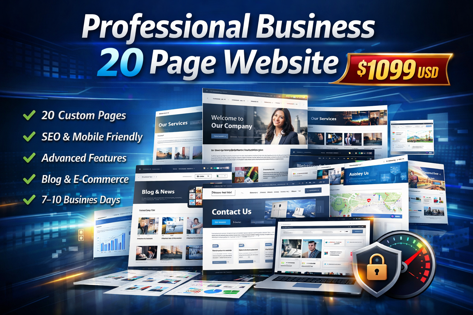 Build a powerful and fully customized online presence with our 20-page professional business website package. Ideal for growing businesses that need detailed content, advanced structure, and a strong digital impact.